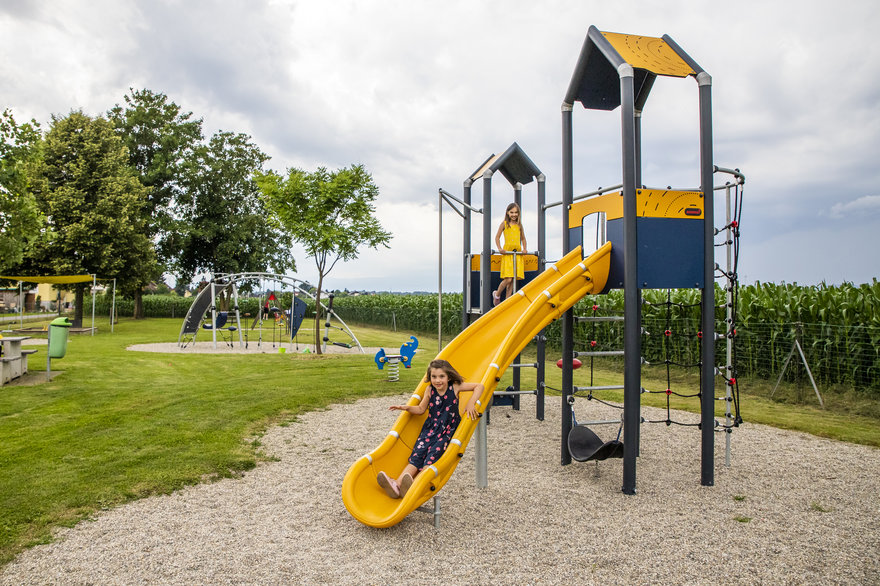 Hinter unserem Gemeindezentrum liegt ein öffentlicher Spielplatz, der viel Raum zum Spielen für unsere Kleinsten bietet. Neben den neuesten Spielgeräten und Klettertürmen sind auch ausreichend Wiesenflächen und eine Sandkiste vorhanden.